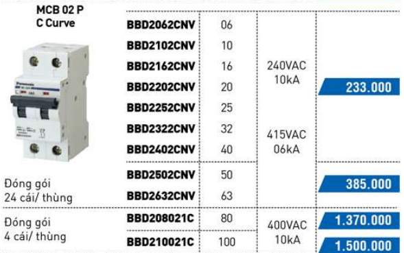 Tìm và so sánh với CẦU DAO TỰ ĐỘNG 100A Panasonic BBD210021C