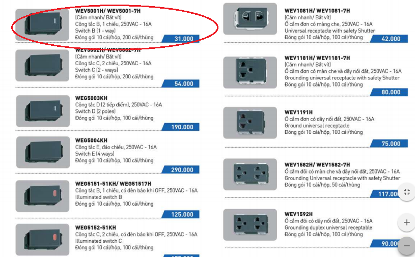 Tìm và so sánh với Công Tắc 1 Chiều Wide Mầu Panasonic WEV5001H