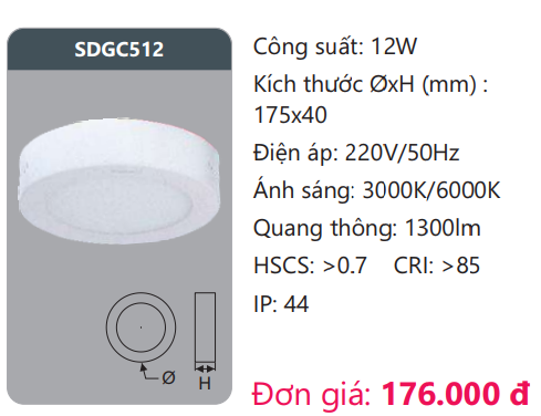 Đèn LED ốp trần nổi Duhal 12W SDGC512
