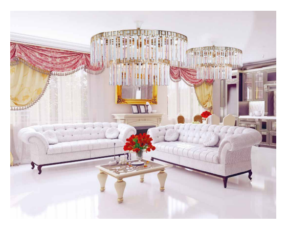Đèn chùm là một trong những phương án chọn lựa Đèn trang trí phòng khách phổ biến, rất thích hợp với không gian phòng khách rộng.